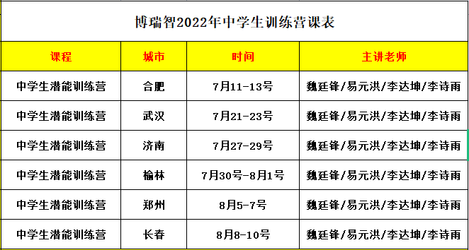 董进宇潜能训练营(中小学生训练营)课程全国课表