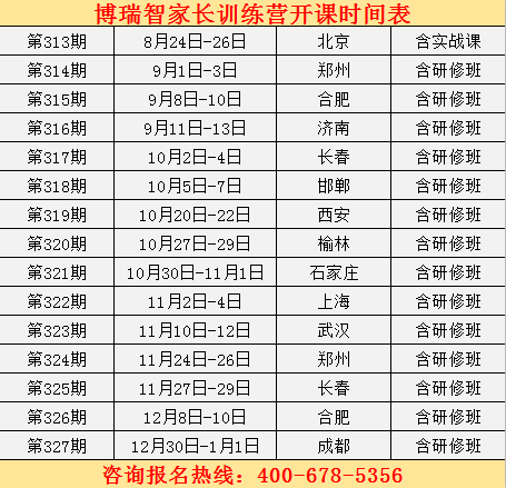 博瑞智教育2018年家长训练营课程安排